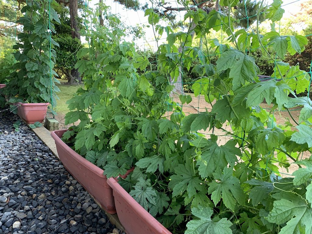今年もゴーヤと琉球朝顔が元気に育っています。