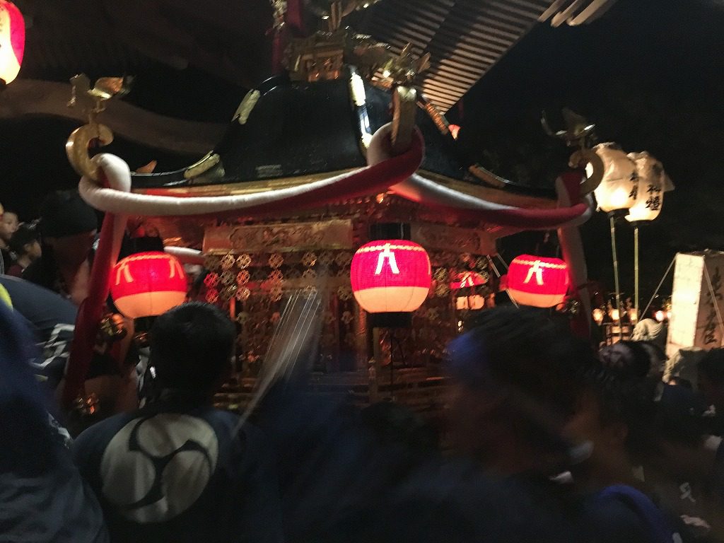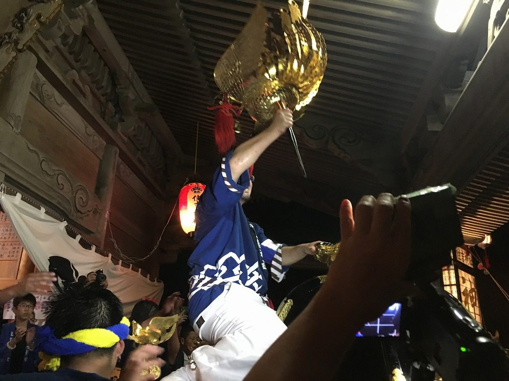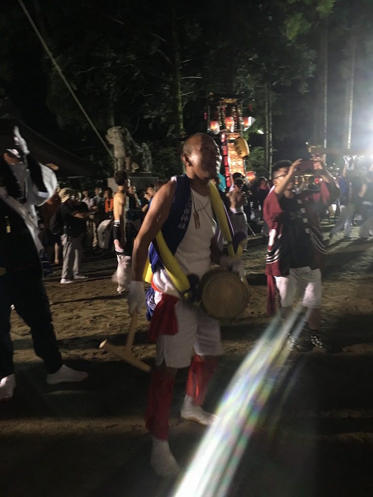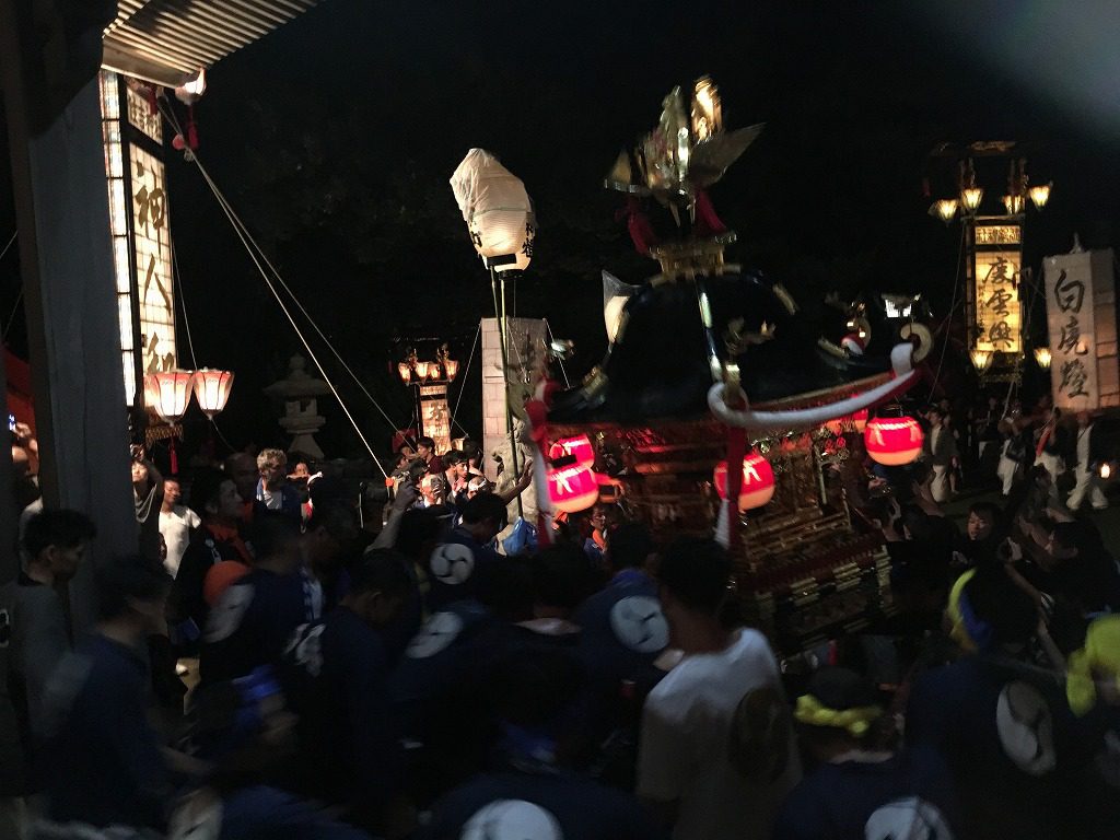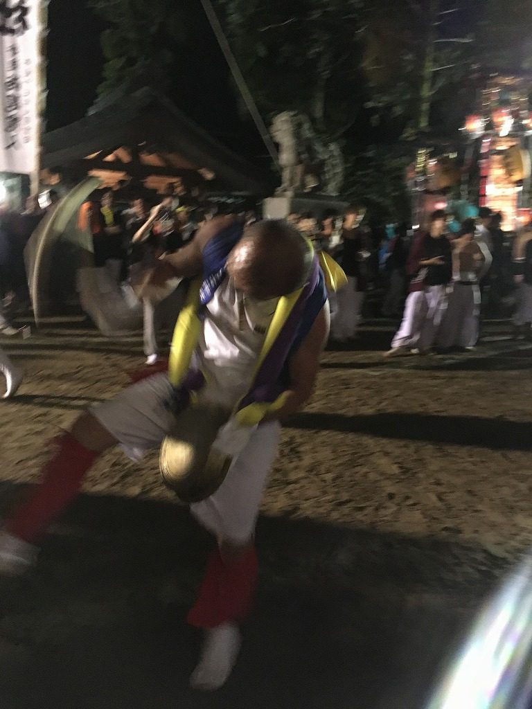 いよいよ神輿が神社の中に入ります。だんだんと太鼓・鉦の音が早く激しく鳴り響きます。