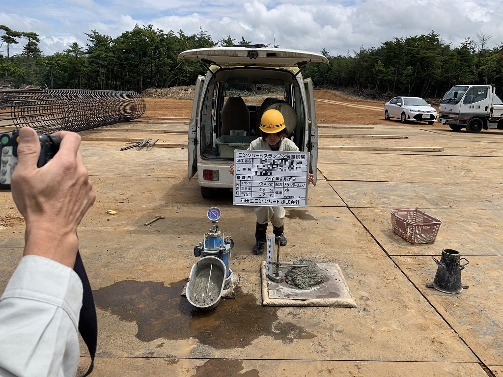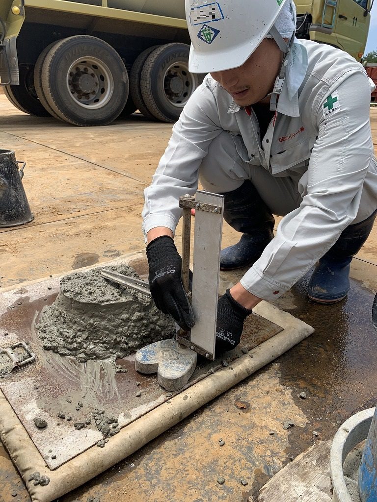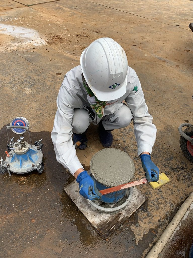 こんにちは!今日は現場でのコンクリートの品質試験中におじゃまします!!