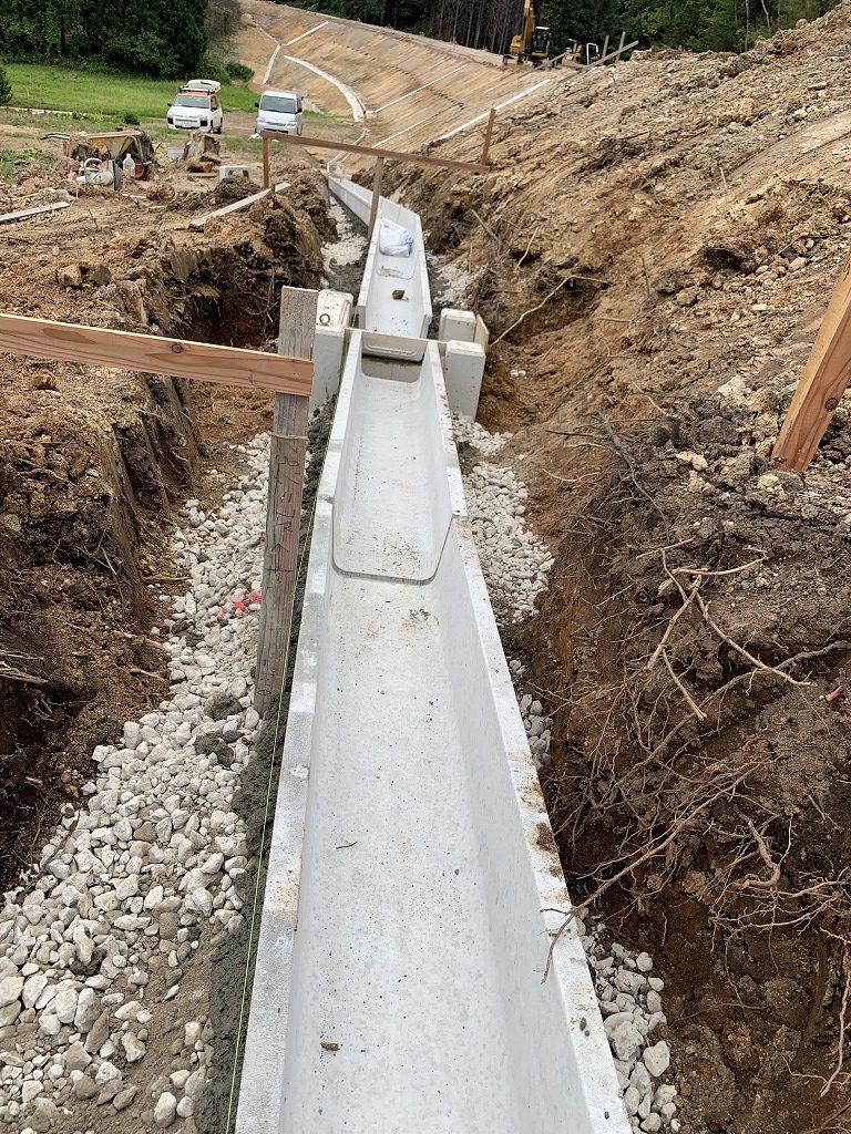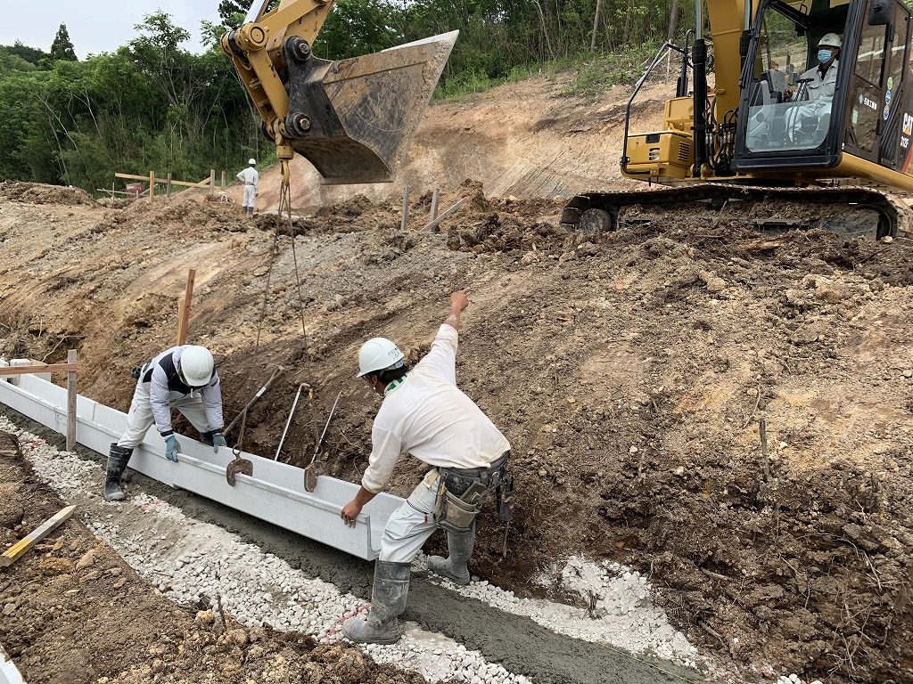 こちらでは、道路排水のための側溝を順次施工中です。