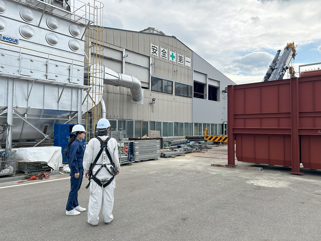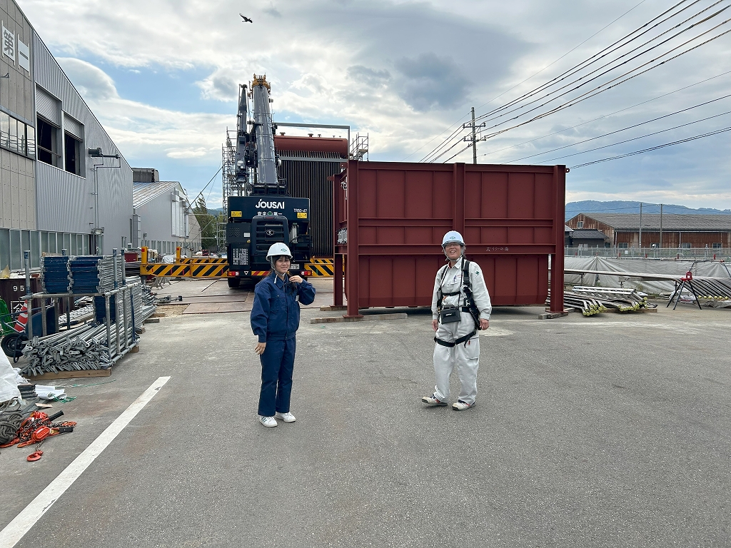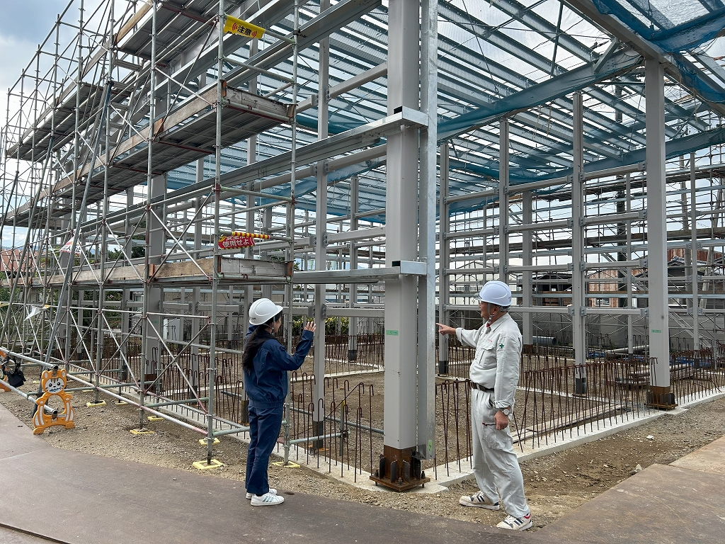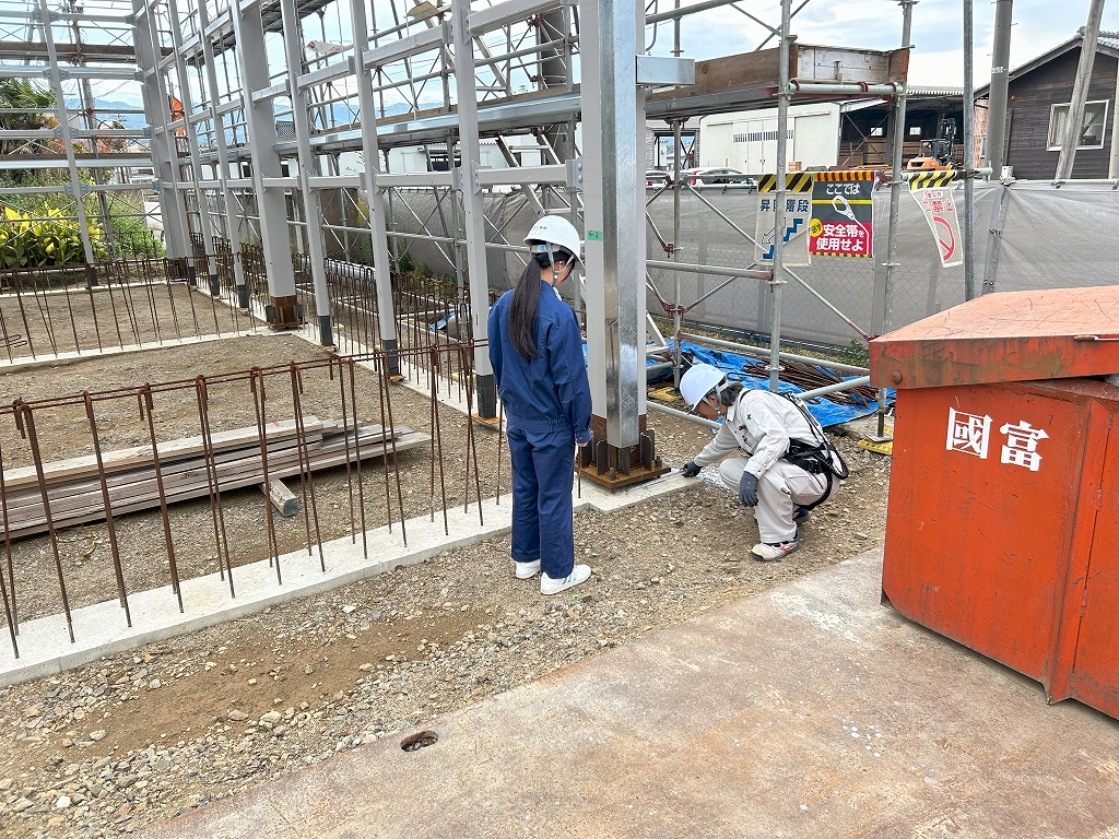 羽咋工業高校卒!Y恵先輩から鉄骨工事の講義中です。