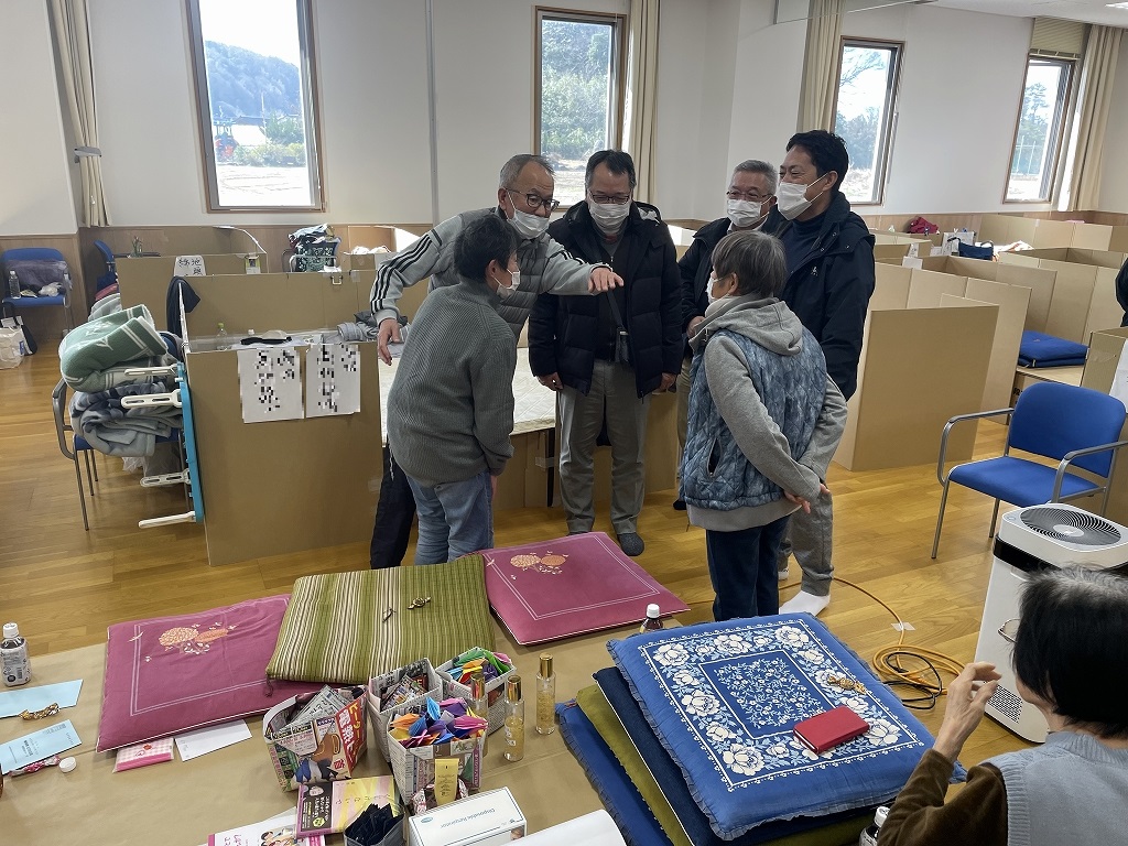 発災より10日も経たないうちに知り合いを通じて段ボールベッドのご支援のお話をいただきました。発災直後、避難所では床に段ボールを敷いて毛布を被って眠っていました。高齢者にはとても過酷な日々でした。みんなで心から感謝し喜びました。膝や腰が痛い高齢者の人達は特に起き上がりが楽になったと喜ばれていました。