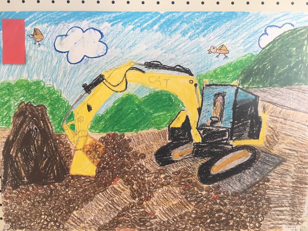 こんにちは。羽咋郡市建設業協会主催の、第15回「小学生の見た建設の絵」コンクールに当社員の娘さん2年生が銅賞に入賞しました。力強く上手に描かれていますね。