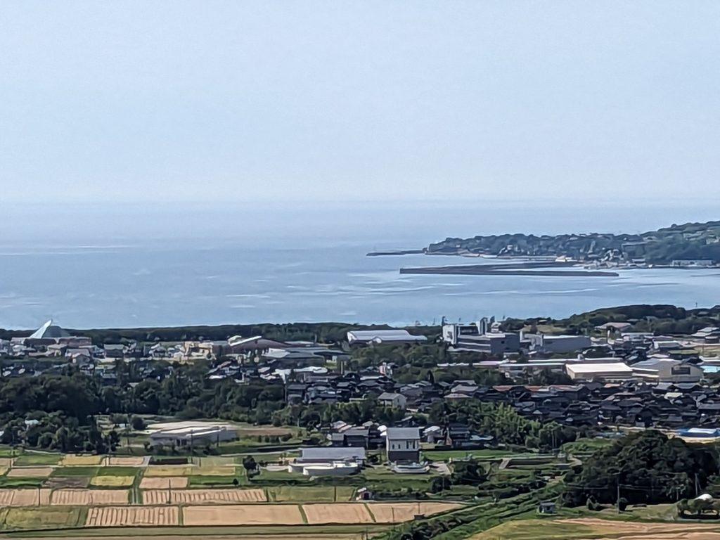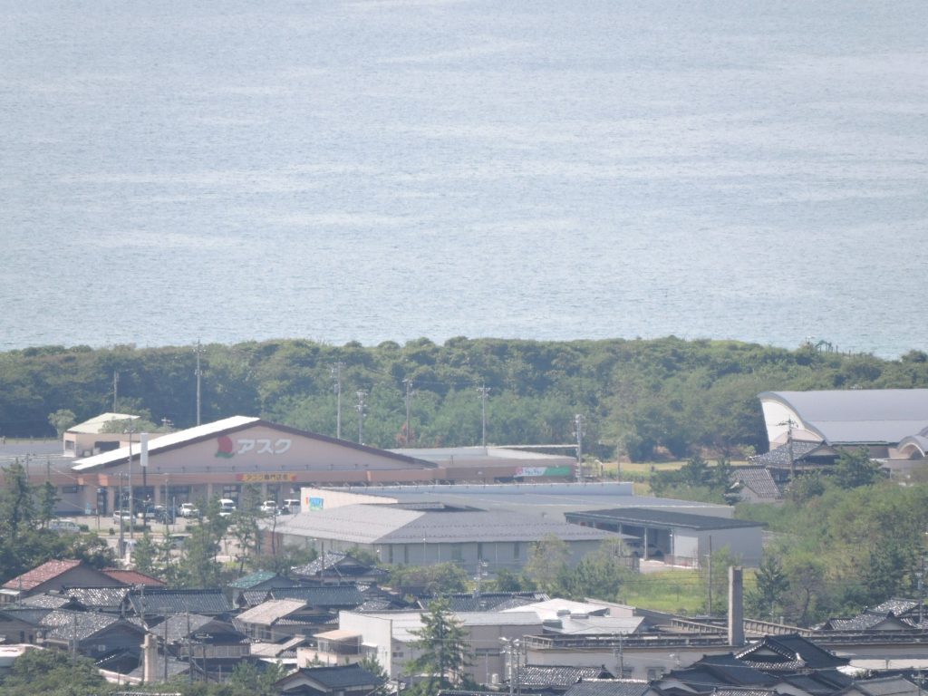 ここから眺めたらびっくりするくらい広い範囲で富来地区を眺めることができます。海があり山があり川が流れて小高い丘が町を囲み本当に気持ちのいい町です。石田工業社屋もズームイン!!