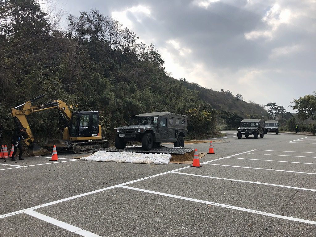 そして、車両通行が可能となりました。陸上自衛隊の特殊車両による住民避難の想定です。