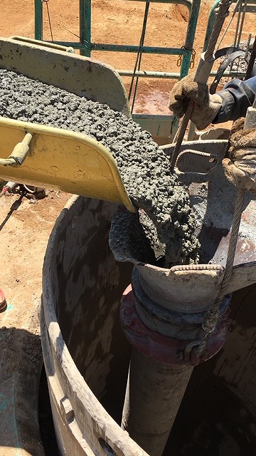 トレミー管で生コンを流し込みます。