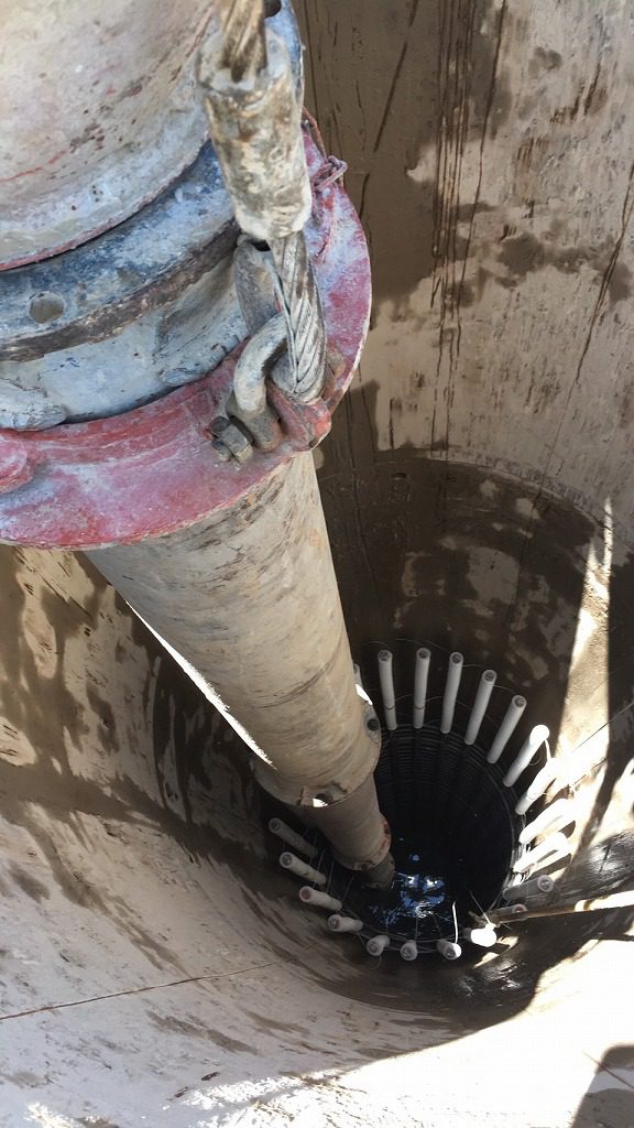 全回転チュービング装置というケーシングマシンで圧入しながらコンクリートを打ちます。