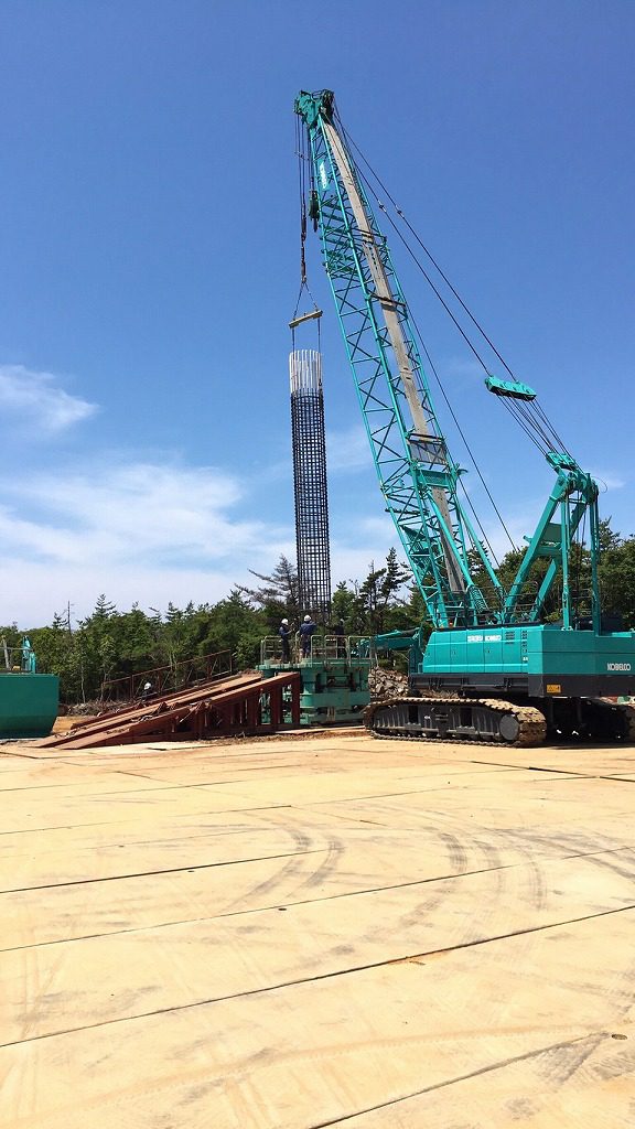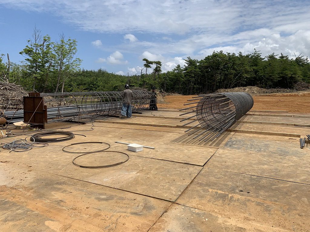 そして、こちらでは次の杭を打つための鉄筋かごを製作中です。