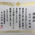 2019年1月25日 / 最終更新日時 : 2020年11月17日 ishida お知らせ羽咋警察署より感謝状を受賞しました 石川県羽咋警察署長より当社辻口相談役が、警察行政活動部門において感謝状を受賞しました。