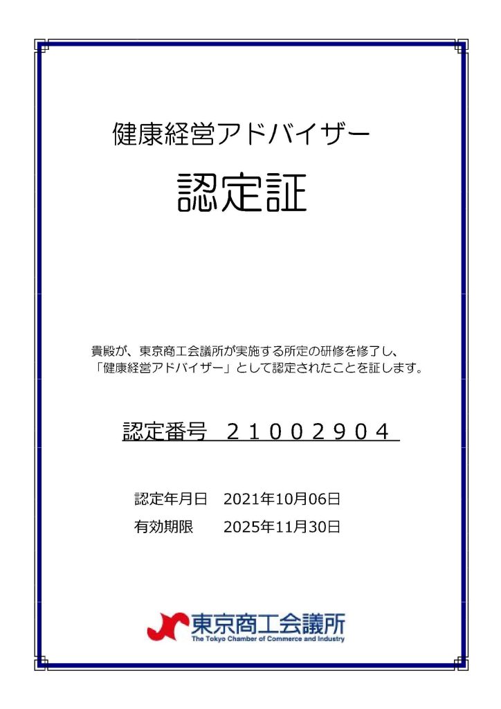 健康経営アドバイザー認定証