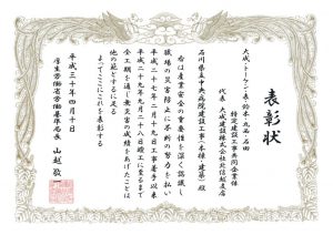 石川県危険物安全協会より表彰を受賞しました